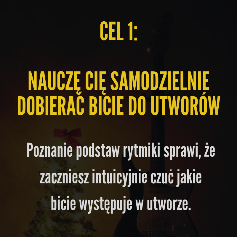- Jeśli jesteś osobą, która nie potrafi samodzielnie dobrać bicia do utworów, a chcesz nauczyć się grać kolędy na gitarze, to koniecznie zapisz się na ten kurs. Nie dość, że w nauczysz się różnych kolęd i pastorałek, to dostaniesz tak zwany pakiet "2 w 1". Podczas ćwiczenia utworów, będziesz też jednocześnie ćwiczył/a rytmikę, a to sprawi, że nauczysz się samodzielnie dobierać bicie do utworów. Ta umiejętność jest naprawdę przydatna ;-)