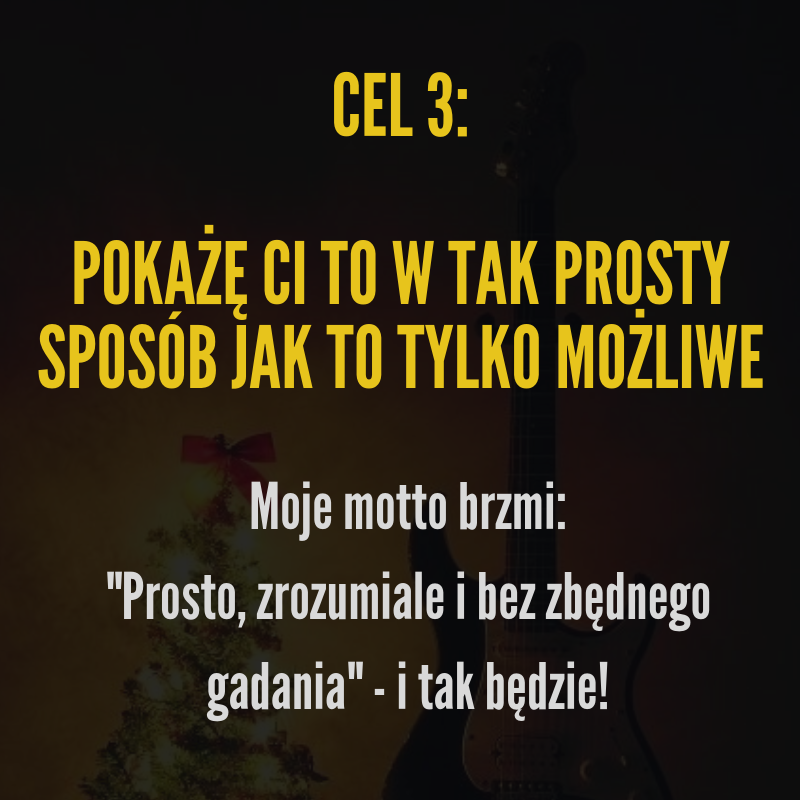 Ponadto ludzie proszą o to, by nauczyć ich kolęd, proponując najróżniejsze tytuły. Dlatego właśnie nie wahałem się ani chwili, gdy wpadłem na pomysł, by stworzyć kurs, który w najprostszy możliwy sposób nauczy gitarzystów jak samodzielnie dobierać bicie do utworów i jak grać kolędy na gitarze.